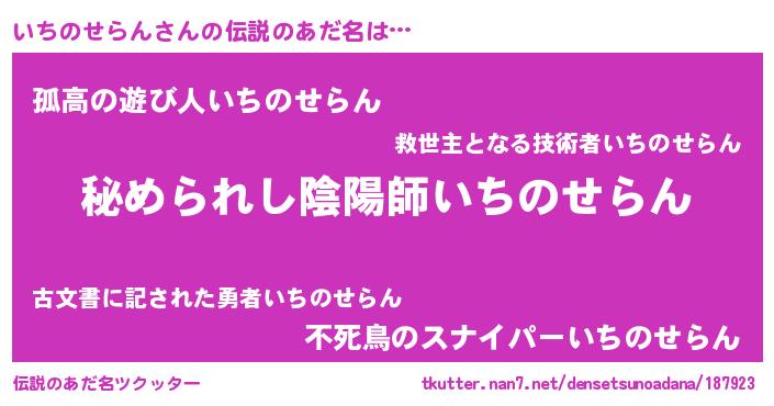 | 意味不明あだ名 | 『いちのせらんフォーエバー』 |