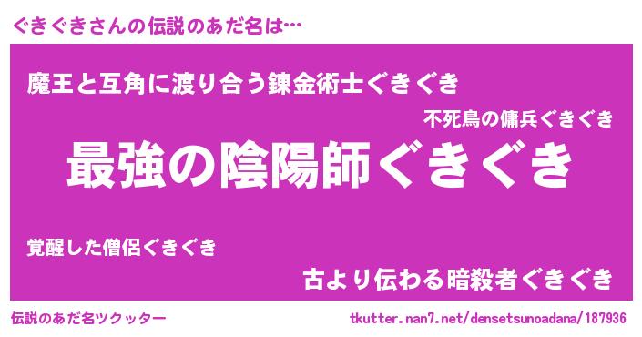 | 意味不明あだ名 | 『住所不定無職ぐきぐき(81歳)』 |