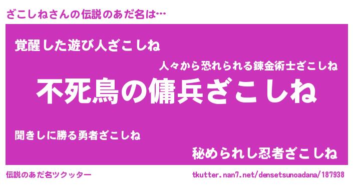 | ヒーロー風カッコイイあだ名 | 『スーパーザコシネ』『炎刃騎士ザコ』 |