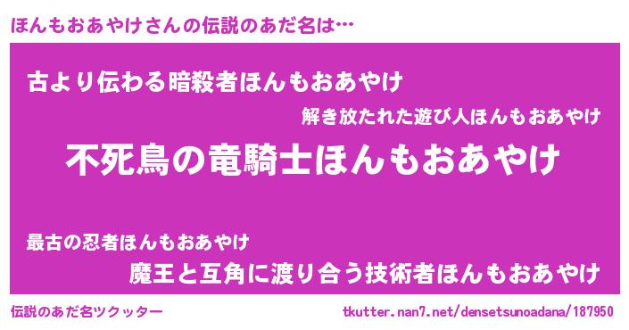 | ヒーロー風カッコイイあだ名 | 『スーパーホンモオアヤケ』 |