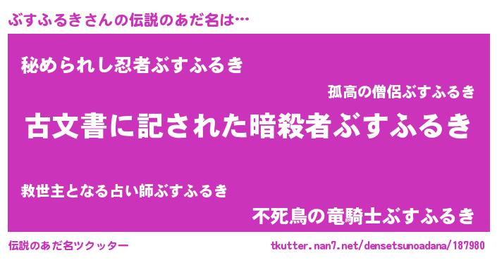 | 意味不明あだ名 | 『永久保存ぶすふるき』『自称ぶすふるき』 |