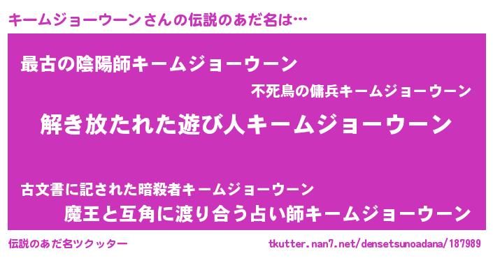 | 意味不明あだ名 | 『とにかく怪しいキームジョーウーン』 |