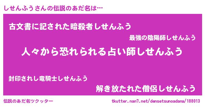 | ヒーロー風カッコイイあだ名 | 『正義の使者しせんふう』『銀牙騎士シセ』 |