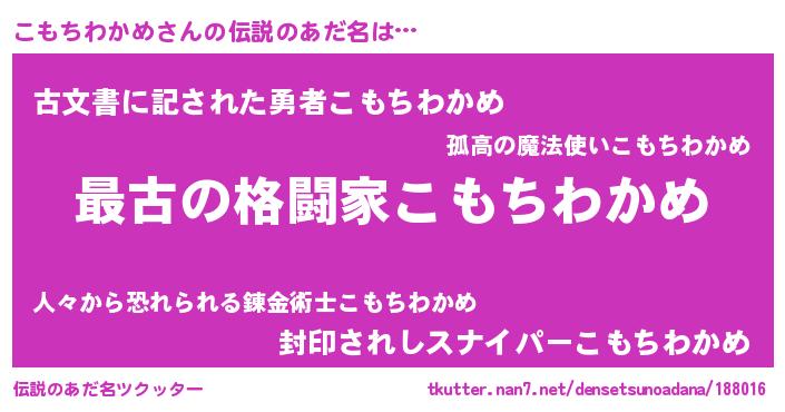 | ヒーロー風カッコイイあだ名 | 『サイバー戦士コモチワカメ』 |