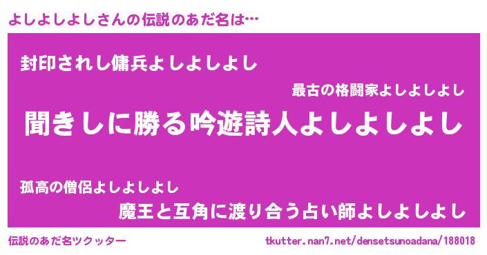 | 意味不明あだ名 | 『住所不定無職よしよしよし(6歳)』 |