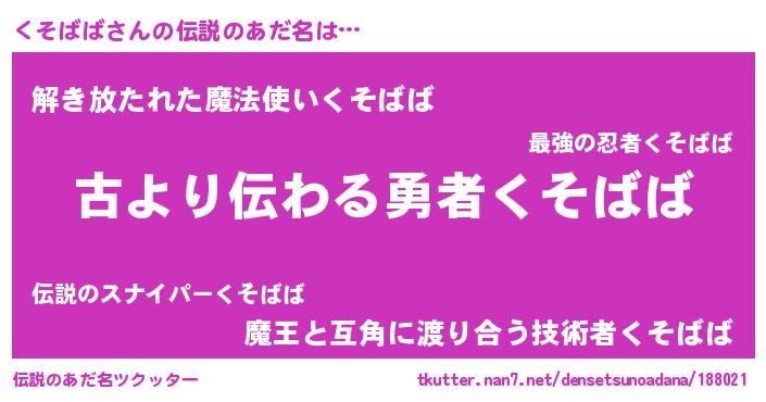| 意味不明あだ名 | 『永久保存くそばば』『自称くそばば』 |
