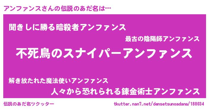 | 意味不明あだ名 | 『住所不定無職アンファンス(79歳)』 |