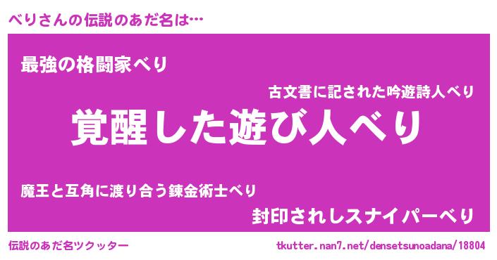 | 意味不明あだ名 | 『とにかく怪しいべり』『自称べり』 |