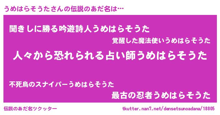 | 意味不明あだ名 | 『眠気覚ましガムうめはらそうた味』 |