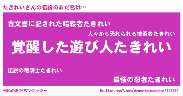 | 男性向けラノベタイトル風あだ名 | 『たきれいの嫁は女の子じゃないと思った?』 |