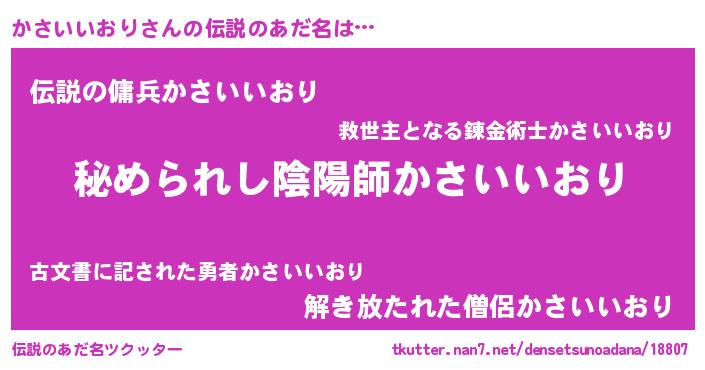 | ファンタジー風あだ名 | 『エターナルカサイイオリー』 |