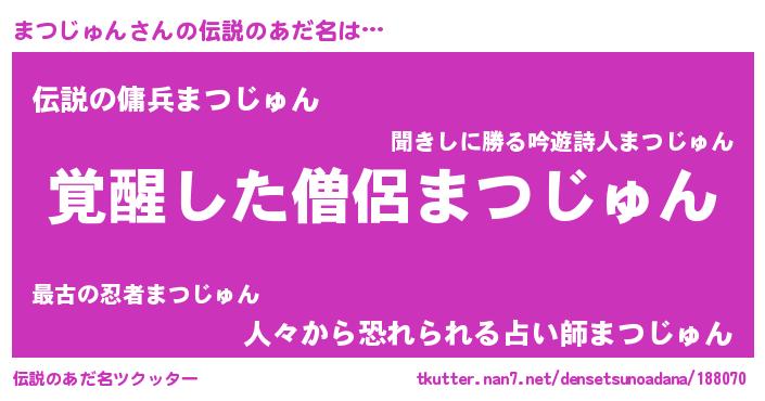 | 男性向けラノベタイトル風あだ名 | 『まつじゅんの嫁は女の子じゃないと思った?』 |