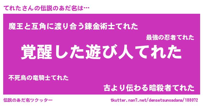 | 意味不明あだ名 | 『住所不定無職てれた(95歳)』『自称てれた』 |