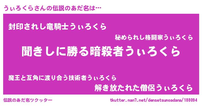 | ヒーロー風カッコイイあだ名 | 『ネオウィロクラ』『スーパーウィロクラ』 |
