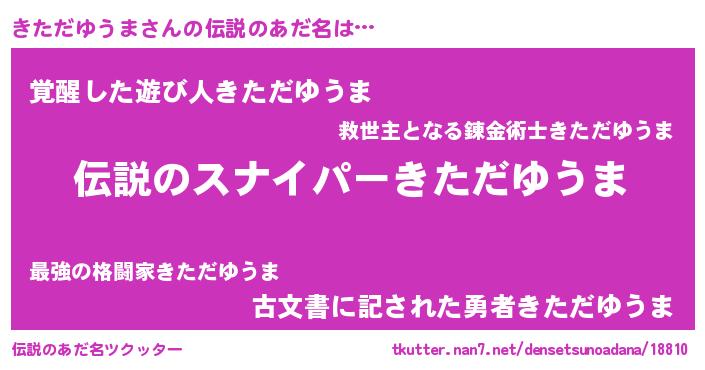 | 胡散臭い通販商品みたいなあだ名 | 『必ず成功する霊験あらたかなお札…その名も「きただゆうま」』 |