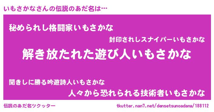 | ヒーロー風カッコイイあだ名 | 『サイバー戦士イモサカナ』 |
