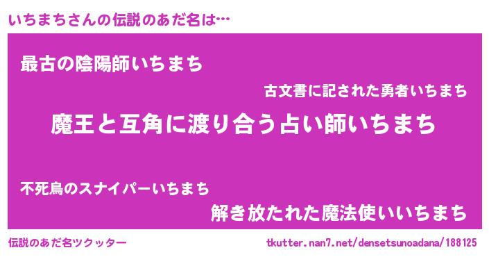 | 意味不明あだ名 | 『自称いちまち』『いちまちフォーエバー』 |