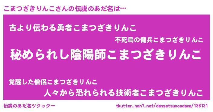 | 男性向けラノベタイトル風あだ名 | 『やはりこまつざきりんこの青春ラブコメはまちがっている 』 |