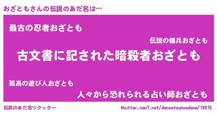 | 意味不明あだ名 | 『住所不定無職おざとも(50歳)』 |