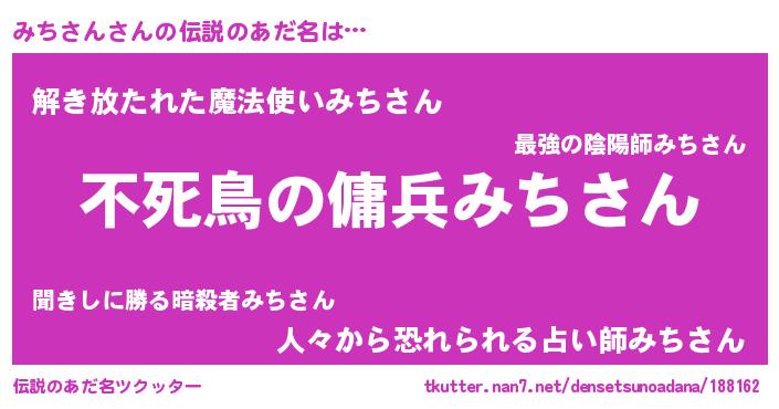 | ヒーロー風カッコイイあだ名 | 『スーパーミチサン』『仮面ミチダー』 |