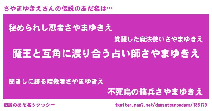 | ヒーロー風カッコイイあだ名 | 『愛の使者さやまゆきえ』『仮面サヤダー』 |