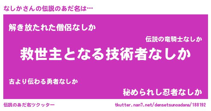 | ヒーロー風カッコイイあだ名 | 『慈愛の使者なしか』『銀牙騎士ナシ』 |