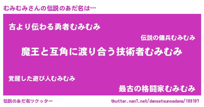 | ヒーロー風カッコイイあだ名 | 『サイバー戦士ムミムミ』『仮面ムミダー』 |