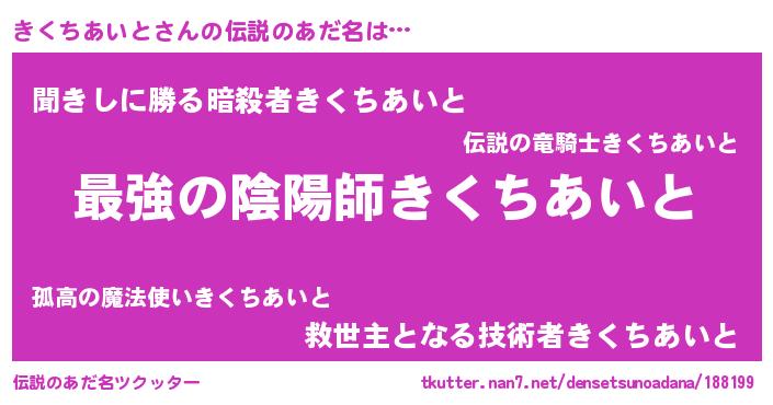 | 男性向けラノベタイトル風あだ名 | 『きくちあいと~年齢イコール彼女いない歴の魔法使い~』 |