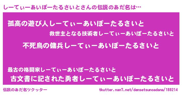 | 胡散臭い通販商品みたいなあだ名 | 『モテモテ間違いなし水晶球…その名も「しーてぃーあいぽーたるさいと」』 |