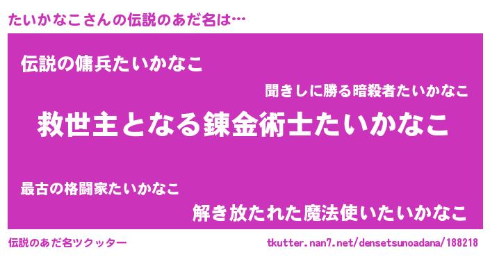 | ヒーロー風カッコイイあだ名 | 『天空の使者たいかなこ』『暗黒騎士タイ』 |