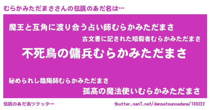 | ヒーロー風カッコイイあだ名 | 『スーパームラカミタダマサ』 |