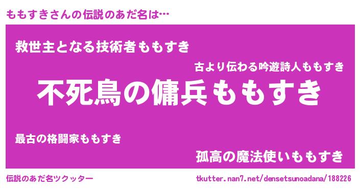 | ヒーロー風カッコイイあだ名 | 『スーパーモモスキ』『究極戦士モモスキ』 |