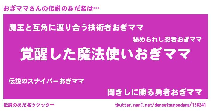 | 胡散臭い通販商品みたいなあだ名 | 『全米が絶賛したサプリメント…その名も「おぎママ」』 |