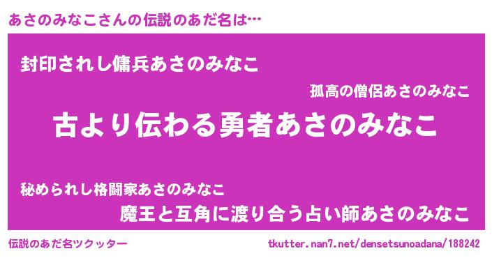 | ヒーロー風カッコイイあだ名 | 『ネオアサノミナコ』『仮面アサダー』 |