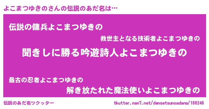 | 意味不明あだ名 | 『永久保存よこまつゆきの』 |