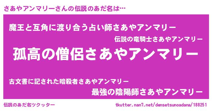 | 意味不明あだ名 | 『とにかく怪しいさあやアンマリー』 |