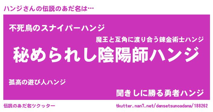 | 欧米人風あだ名 | 『ハンジクリステル』『マイケルハンジ』 |