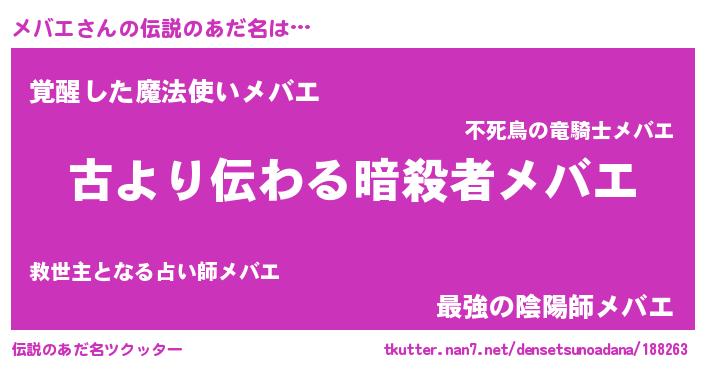 | 意味不明あだ名 | 『住所不定無職メバエ(14歳)』 |