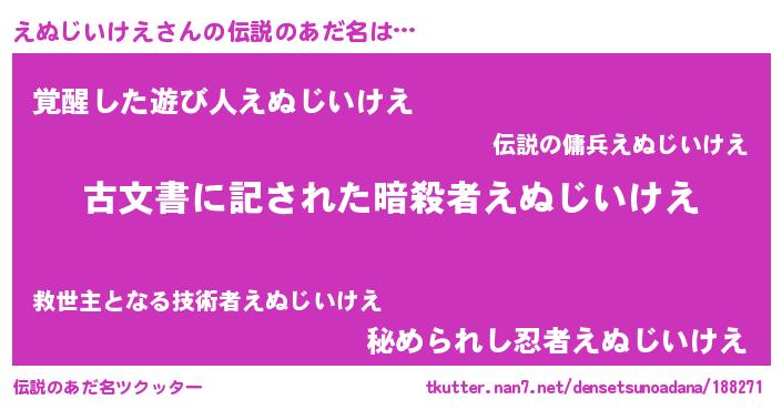 | ポケモン風あだ名 | 『ゼニエヌ』『ヒエヌジイケエ』 |