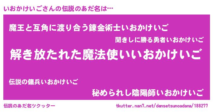 | 意味不明あだ名 | 『とにかく怪しいいおかけいご』 |
