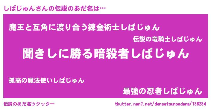 | 男性向けラノベタイトル風あだ名 | 『しばじゅんという概念が存在しない退屈な世界 』 |