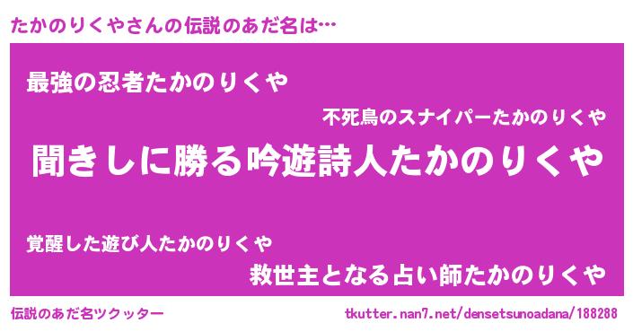 | 意味不明あだ名 | 『しいたけ科たかのりくや属』 |