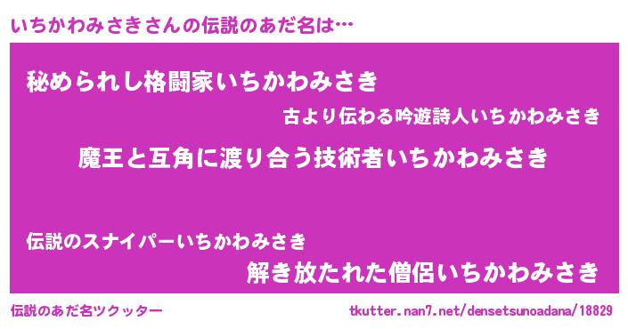 | 意味不明あだ名 | 『たけのこ科いちかわみさき属』 |