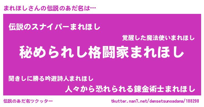 | 意味不明あだ名 | 『自称まれほし』『まれほしフォーエバー』 |