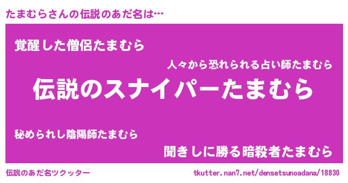 | 胡散臭い通販商品みたいなあだ名 | 『必ず成功する霊験あらたかなお札…その名も「たまむら」』 |