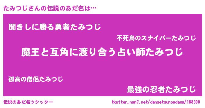 | ヒーロー風カッコイイあだ名 | 『友情の使者たみつじ』『ネオタミツジ』 |