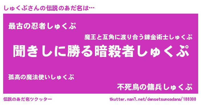 | ヒーロー風カッコイイあだ名 | 『仮面シュダー』『ネオシュクプ』 |