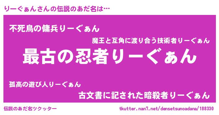 | 意味不明あだ名 | 『りーぐぁんフォーエバー』 |