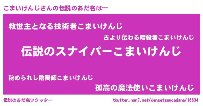 | ヒーロー風カッコイイあだ名 | 『スーパーコマイケンジ』『暗黒騎士コマ』 |