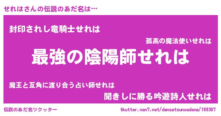 | ファンタジー風あだ名 | 『ゼセレトゥ』『エターナルセレハー』 |
